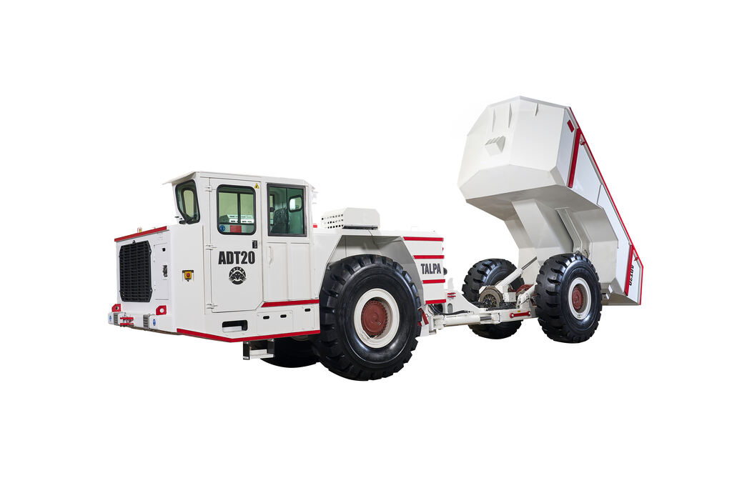 Мощный дизельный самосвал Talpa ADT 20 предназначен для выполнения работ как непосредственно в подземных шахтах, так и в более низкосводных, узких и труднодоступных местах. Мощное полноприводное шарнирно-сочлененное шасси этой модели обеспечивает быстрое и безопасное маневрирование в стесненных условиях.